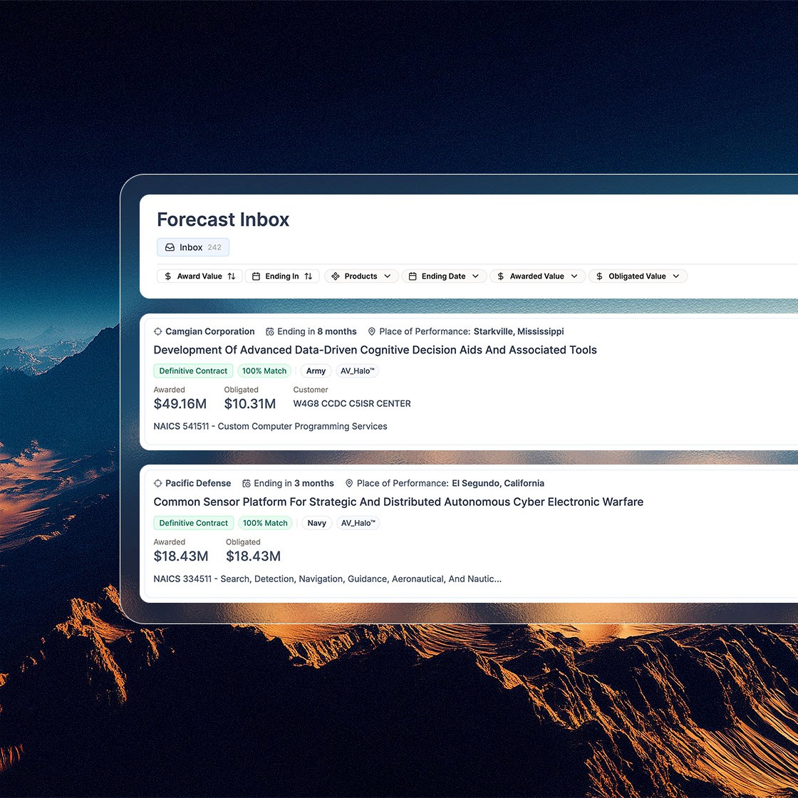 Usul scans half a billion government transactions to identify contracts expiring in the next two years from your target customers and competitors, so you shape opportunities 24 months before RFIs drop.