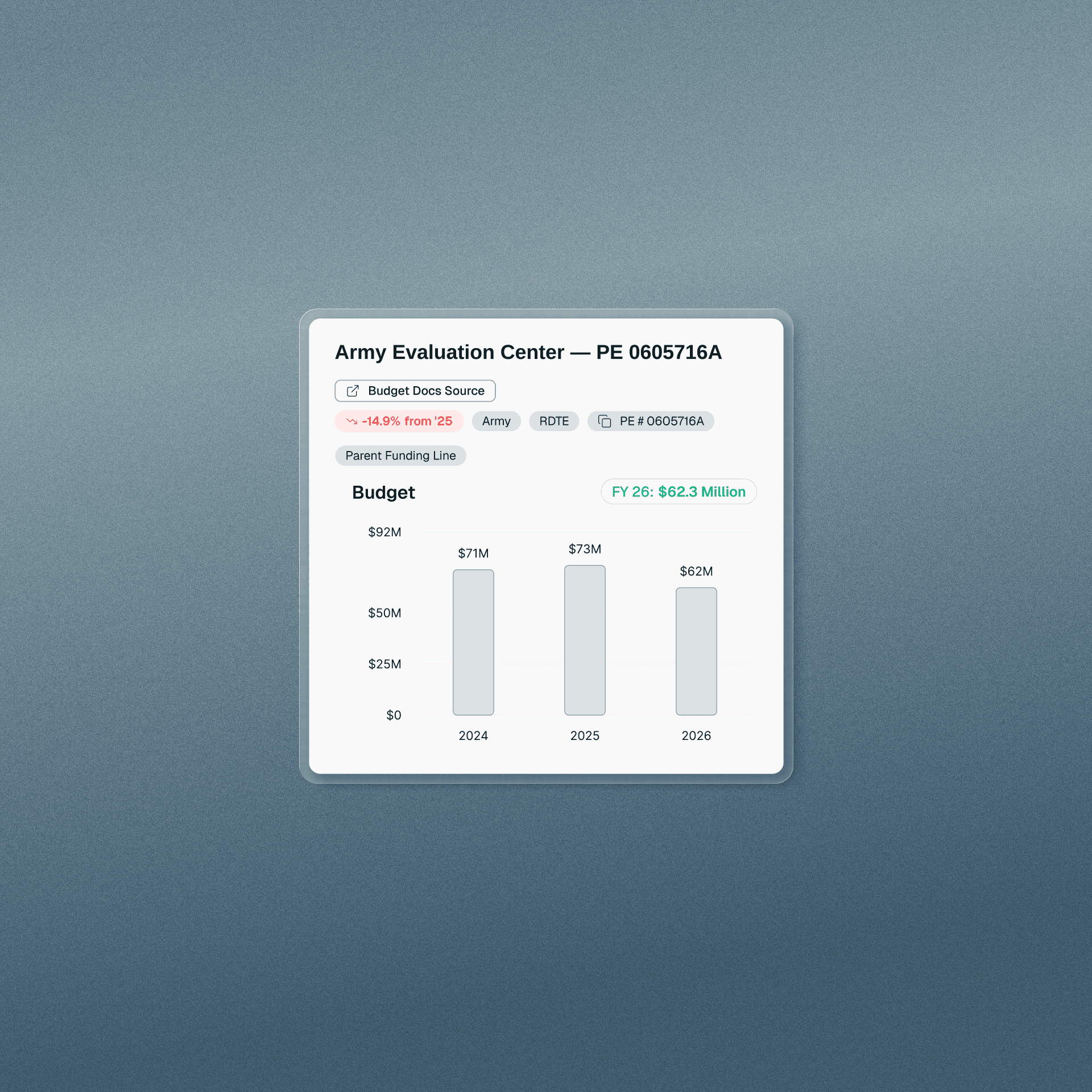 The only platform that links program element lines to the specific stakeholder who controls that spending, so you know exactly who has budget for your capabilities.
