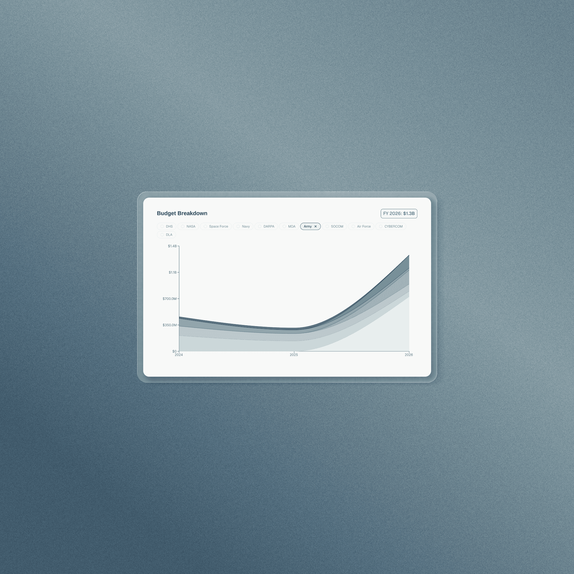 Discover all funding lines across the federal government with budget authority to purchase your solutions, in seconds not months.