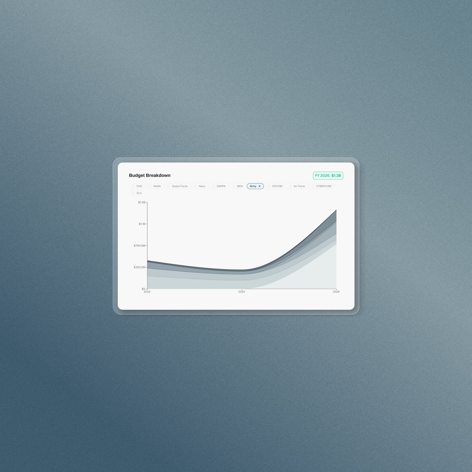 Track program funding, agency priorities, and stakeholder shifts across every market you compete in. Shift strategy in real time on the highest value pursuits.