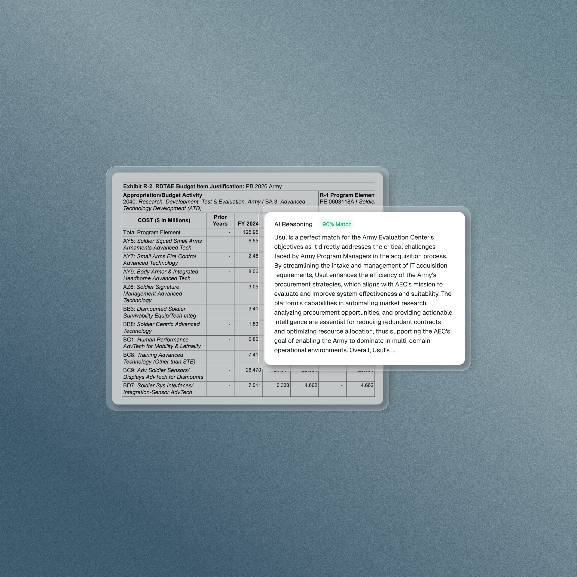 Usul gives government contractors a secure, trusted way to deploy AI across your organization. We embed directly within your teams to drive wins at scale.