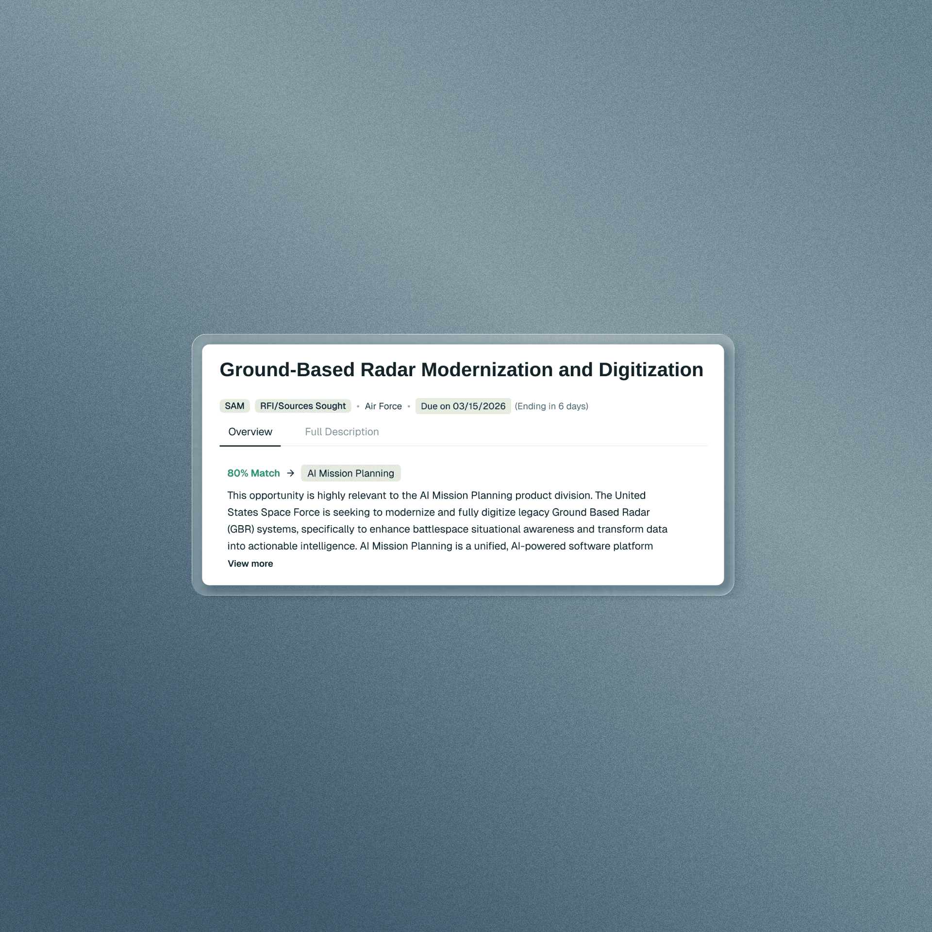 A full suite of AI-powered tools built specifically for government contracting professionals.