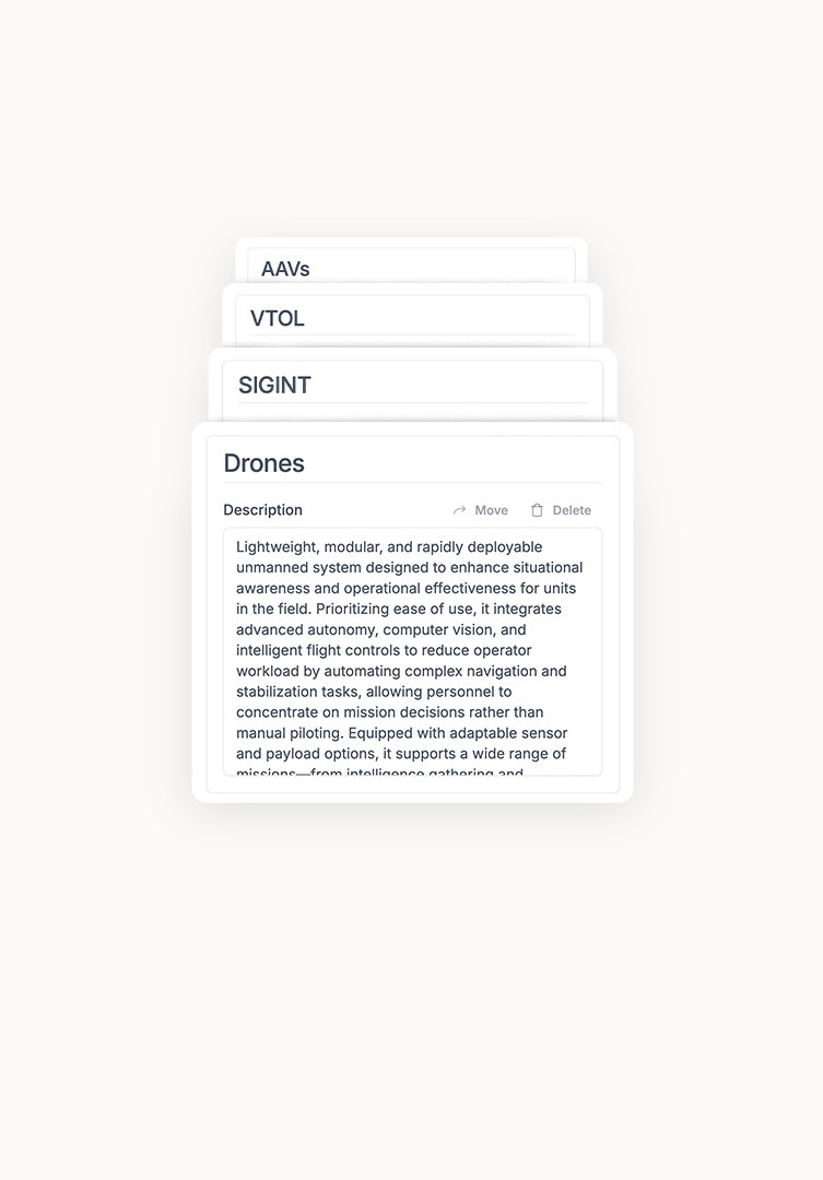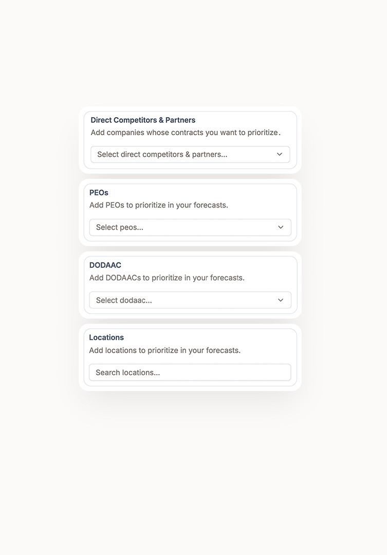 Define your technical capabilities, past performance, and solutions so our AI understands exactly what you deliver.