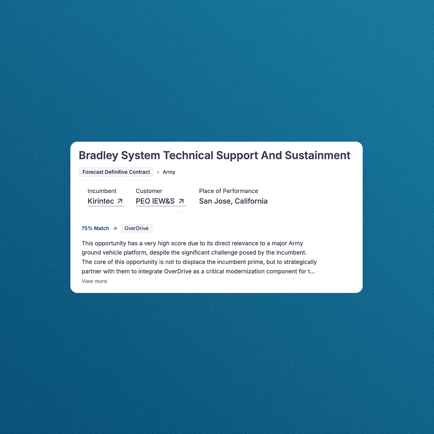Our product velocity, driven by customer dedication, has consistently won over the fastest moving business development and capture teams. Yours could be next.